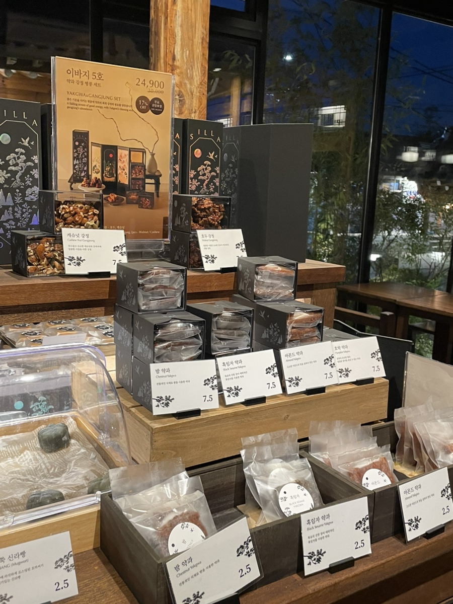 ‘신라빵 + 주악 세트’, ‘약과 + 정과 세트’ 등등 하나하나 포장도 예쁘게 되어 있어서 선물용으로도, 외국인 친구 기념품으로도 딱이다.