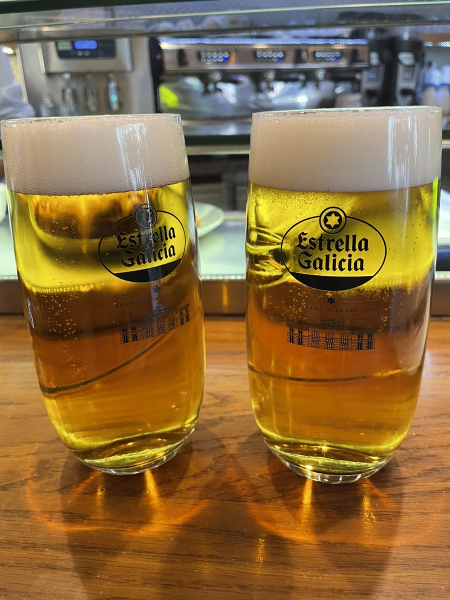 가우디 투어 끝에 굶주린 상태로 달려간 매장은 이미 만석이었으나, 운 좋게 바 테이블에 자리를 잡아 빠르게 입장할 수 있었다. 자리에 앉아 QR 코드로 한글 메뉴판을 확인한 뒤, 시원한 생맥주와 함께 이곳의 필살기인 **이베리코 돼지고기(Secret Iberic)**와 먹물 빠에야를 주문했다. QR코드로 한국어 메뉴를 볼 수 있는 스페인 바르셀로나의 식당 엘글롭 가우디 추천이다.