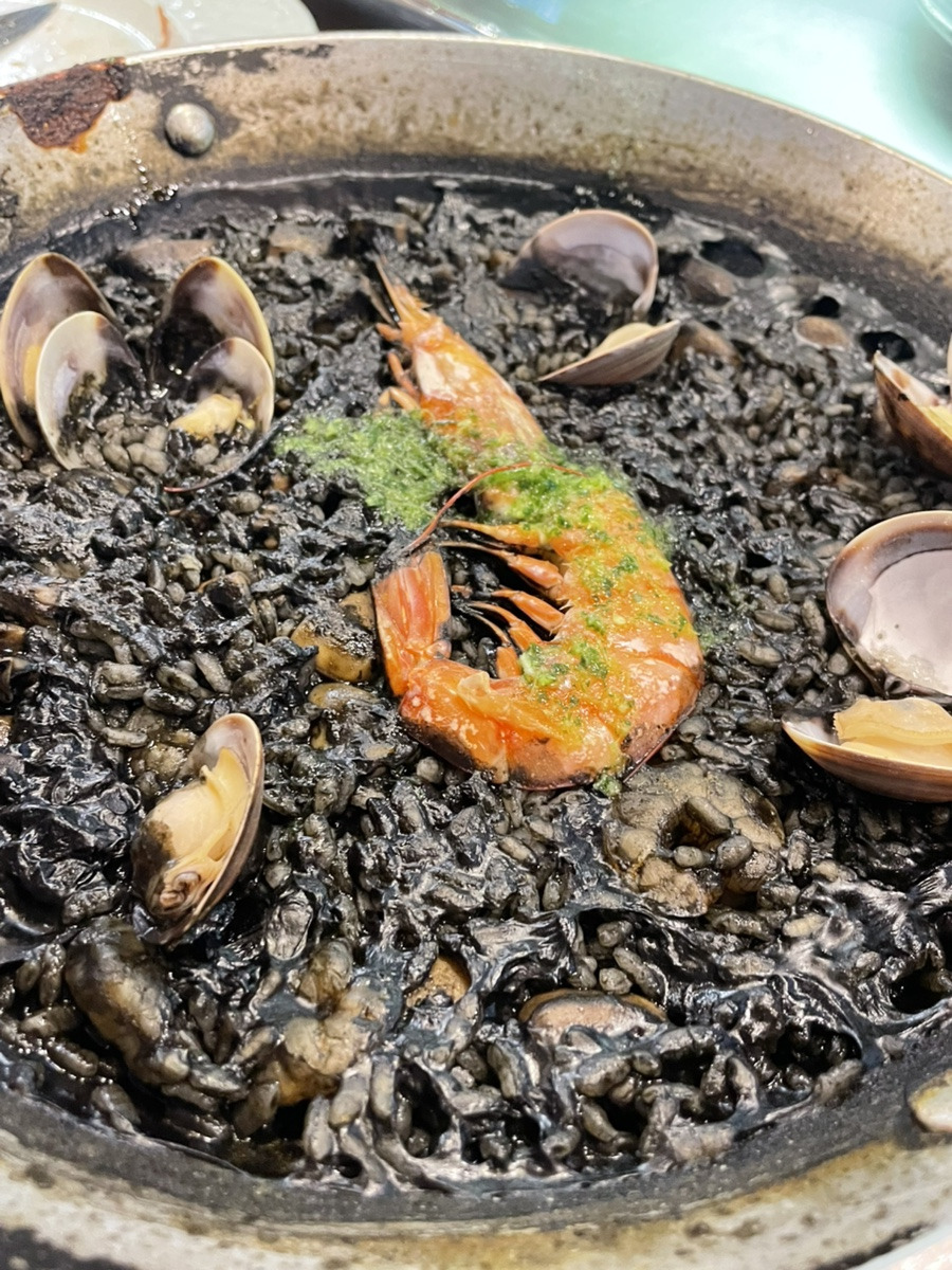 뒤따라 나온 먹물 빠에야는 까만 비주얼 속에 통통한 조개와 새우가 듬뿍 들어가 있어 바다의 감칠맛을 풍부하게 전해주었다. 한국인의 입맛에 딱 맞는 적절한 간 덕분에 비린 맛 전혀 없이 바닥까지 싹싹 긁어먹을 정도로 만족스러운 식사였다.