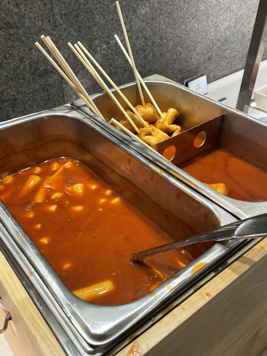 가장 먼저 눈에 들어온 리쿼 바에는 맥주부터 와인, 위스키까지 다양한 주류가 구비되어 있어 취향껏 즐기기에 부족함이 없었다. 아침 식사를 거른 위장을 위해 볶음밥과 불고기 같은 든든한 한식 메뉴부터 싱싱한 샐러드까지 알차게 담아왔다. 특히 바삭하고 달콤한 감자튀김과 퍽퍽함 없는 찜닭 요리는 입맛을 돋우는 최고의 별미였다. 여행하는 동안 그리울 매콤한 떡볶이와 어묵으로 'K-소울'을 충전하니 2주간의 여정도 든든하게 버틸 수 있을 것 같았다.
