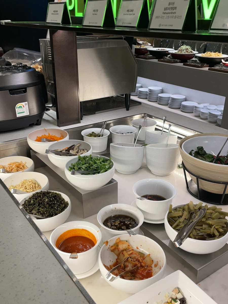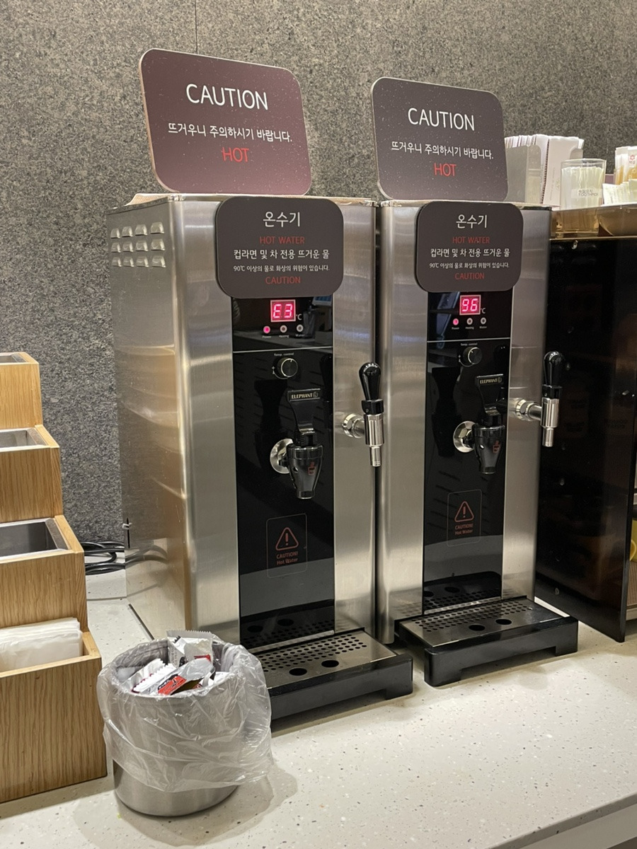 마치 고급 웨딩홀 뷔페에 온 듯 깔끔하게 관리되는 음식들은 직원들이 수시로 확인하며 비지 않게 채워주어 만족스러웠다. 아침임에도 불구하고 부드러운 일품진로 오크 한 잔을 곁들이며 비행 전 최고의 사치를 누렸다. 라운지 한편에서 커피 한 잔의 여유를 즐기다 보니 어느덧 탑승 시간이 다가와 아쉬운 마음을 뒤로하고 일어났다. 입구 데스크에서 항공기 시간을 꼼꼼히 체크해 주는 세심한 서비스 덕분에 마음 편히 쉴 수 있었다. 출국 전 편안한 휴식과 맛있는 식사를 동시에 해결하고 싶다면 인천공항 스카이허브 라운지는 최고의 선택이었다.