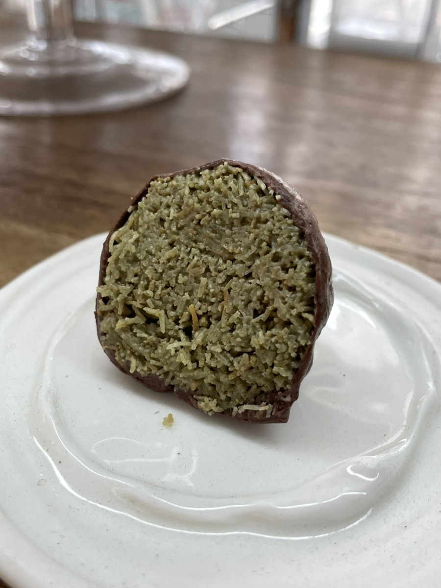 입안에 넣으니 찰떡파이처럼 쫀득한 겉면 속에 페레로로쉐처럼 고소하고 바삭한 피스타치오 내용물이 어우러져 고급스러운 달콤함을 선사했다.
