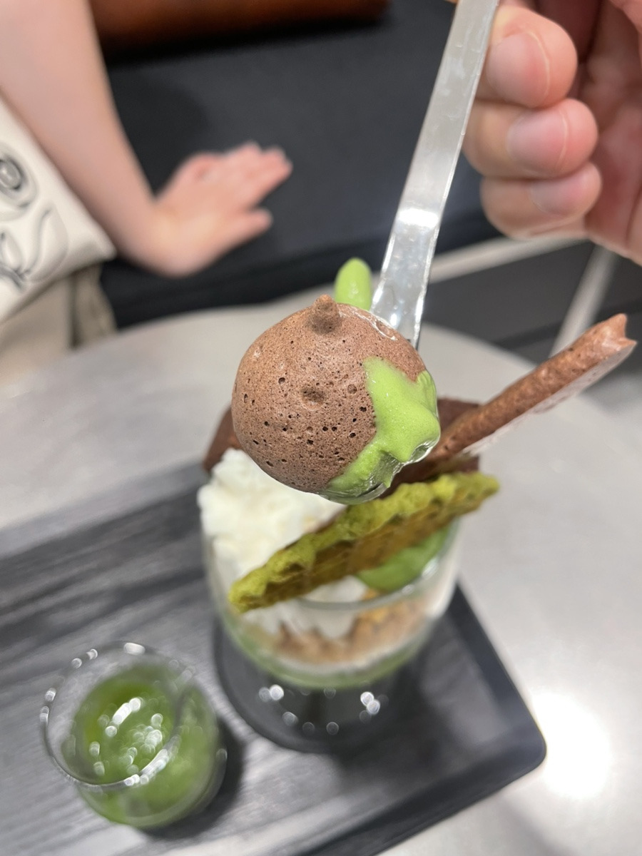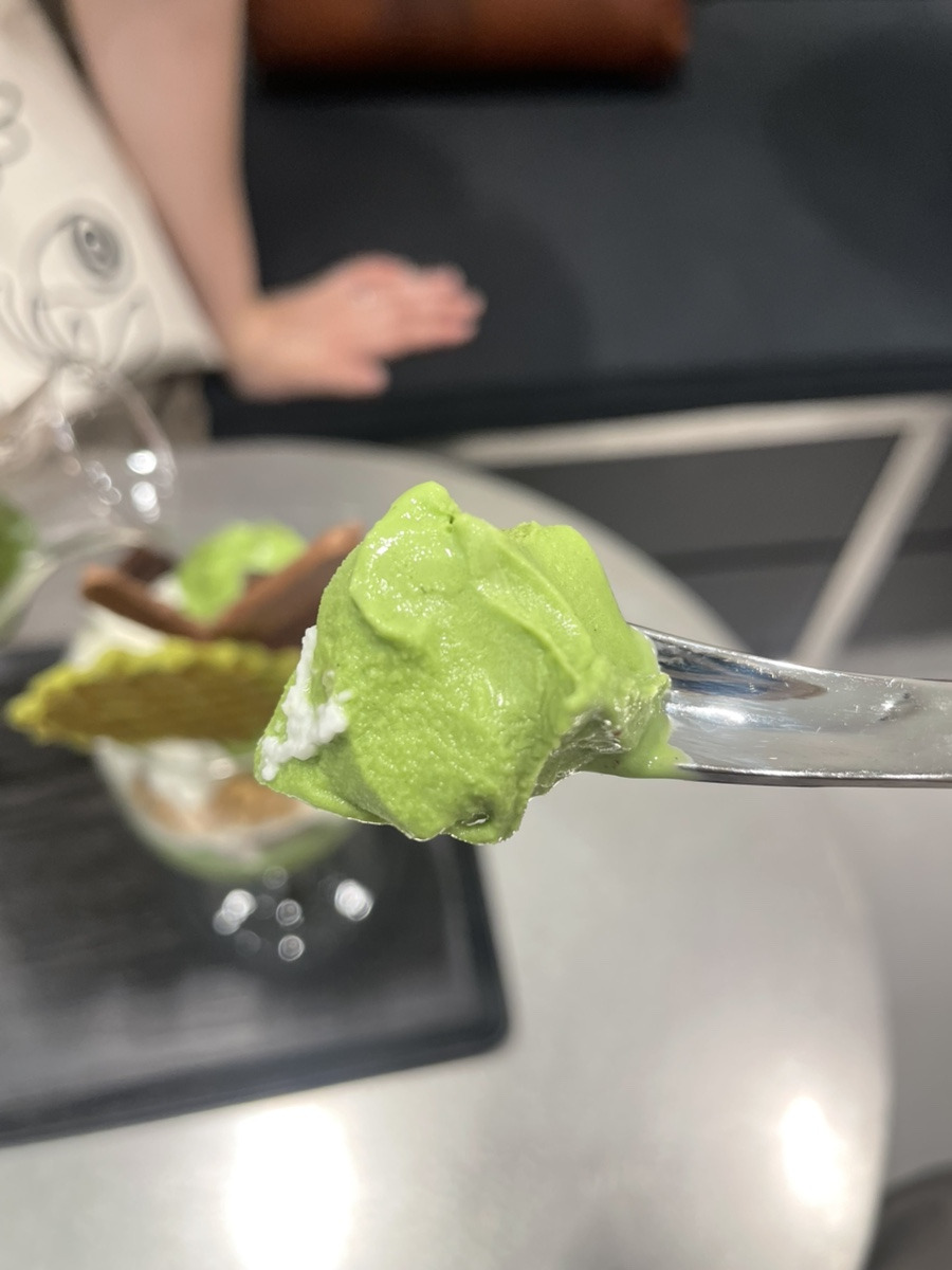 부드러운 바닐라 샹티크림 위에 진한 말차 아이스크림, 바삭한 크럼블과 달콤한 브라우니가 옹기종기 올라간 모습은 마치 정교한 모형처럼 예뻤다.