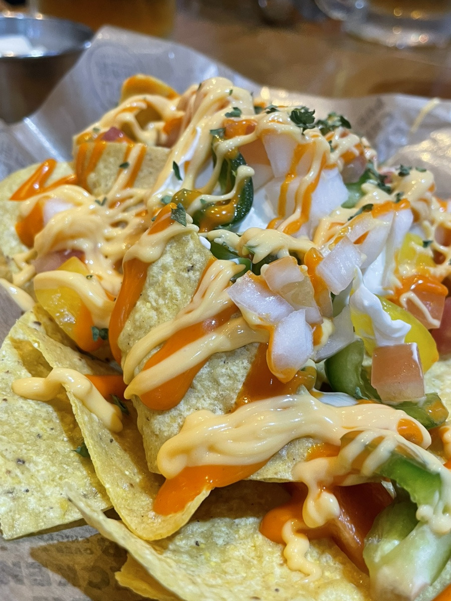 바삭바삭 나초 위에 시원하면서도 상큼하고 신선한 토마토와 야채들이 소스와 잘 어울려서 맥주 안주로 기가막힌다.