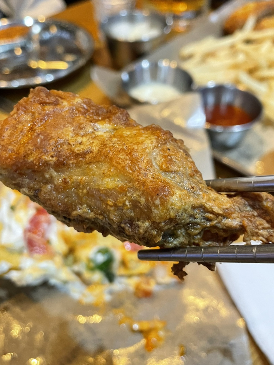 튀김옷이 두껍지 않아 먹기에 부담스럽지 않고 충분히 바삭한 식감과 퍽퍽하지 않고 촉촉한 계육이 아주 일품이다.