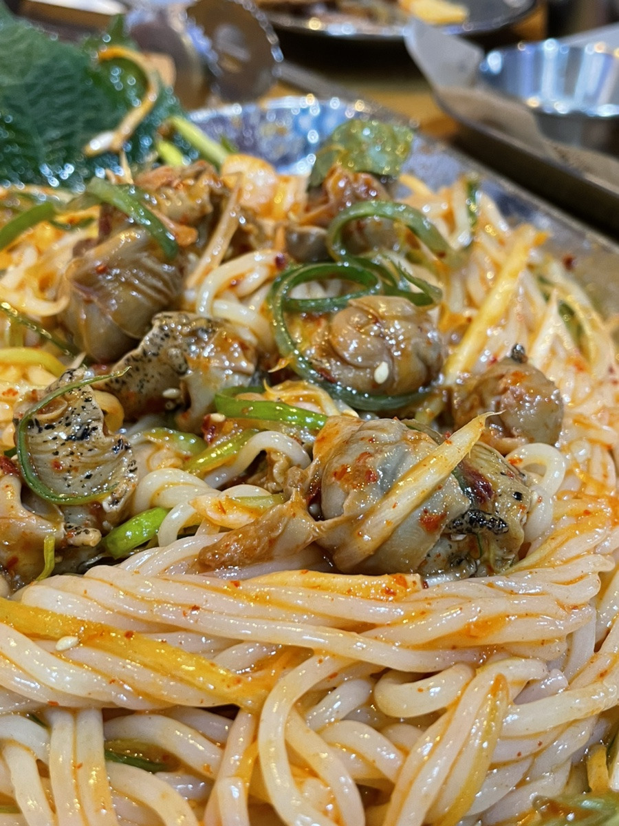 고소한 참기름향이 올라오는 골뱅이무침에 맛있는 치킨과 피자까지