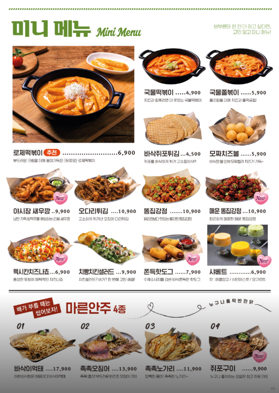 풍미메뉴, 미니메뉴 에는 보통의 치킨집에서는 볼 수 없는 다양한 메뉴들이 있는데, 여기서는 진심으로 멕시칸치즈나쵸를 강추한다.