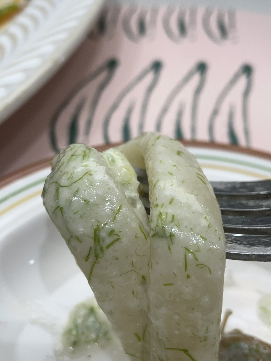 떡을 한 입 딱 넣는순간 오~ 감태와 떡이 이렇게나 잘 어울리다니. 화이트크림떡볶이는 길쭉하고 쫄깃해서 약간 분모자 느낌도 난다.