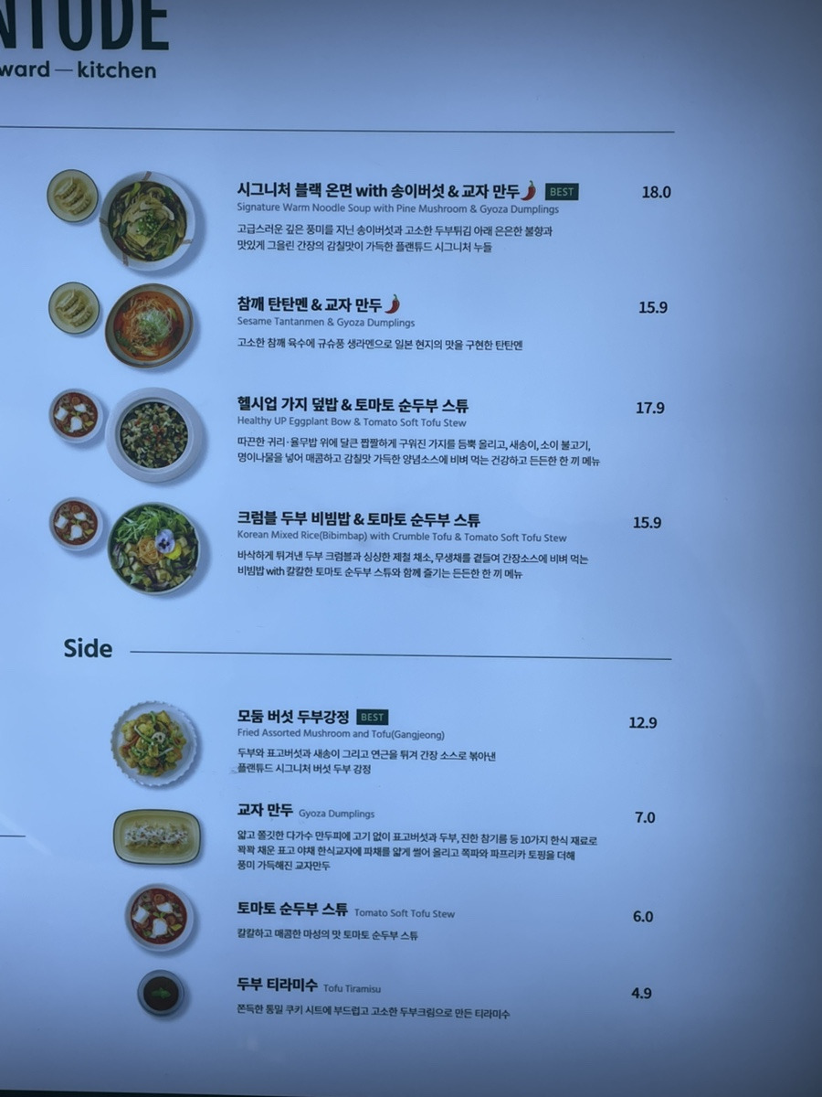 역시 채식위주의 비건들을 위한 채식메뉴 이지만 한번 도전해보기로 한다.