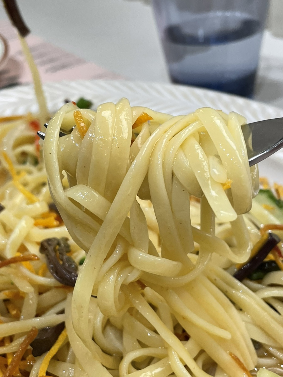 너무나도 잘 어울리는 다양한 식감의 채소와 알단테 잘 익은 파스타면의 환상조화! 오일스톡은 신의 한 수!