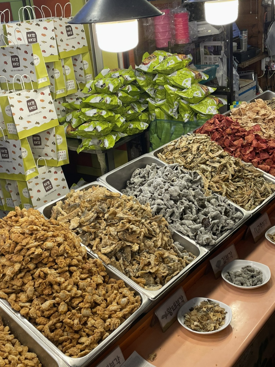 "속초 먹거리 총 집합! 새우튀김, 술빵, 누룽지 오징어순대 까지! 속초중앙시장 속초관광수산시장!"