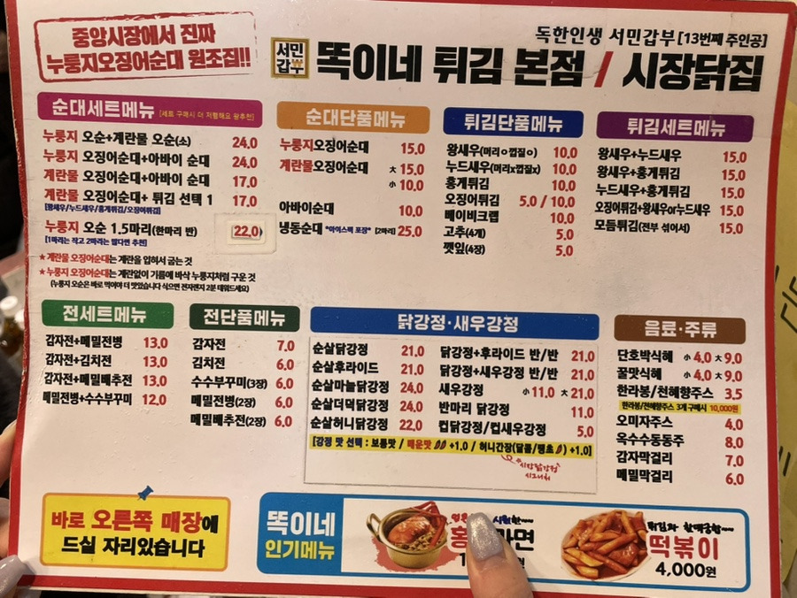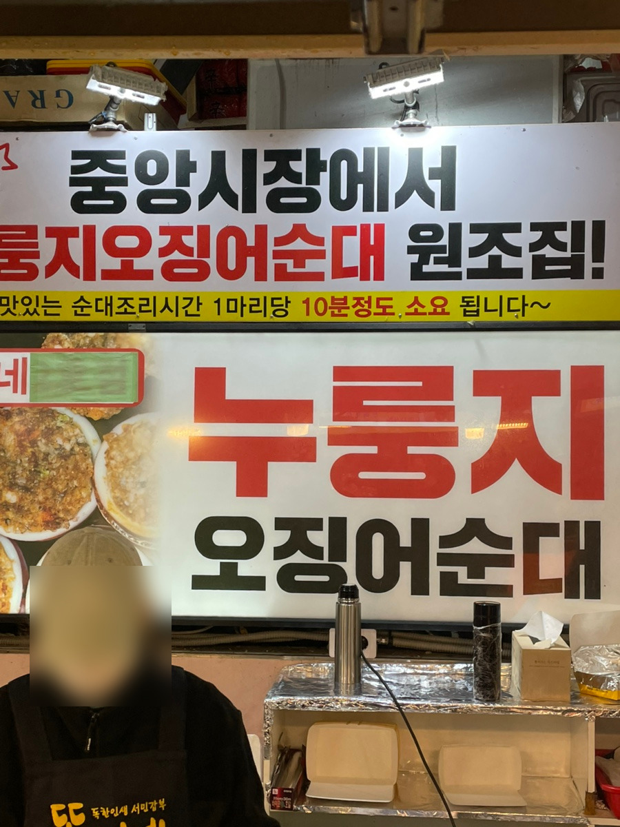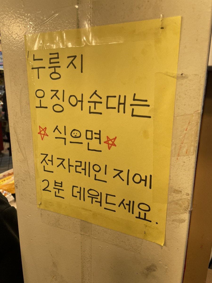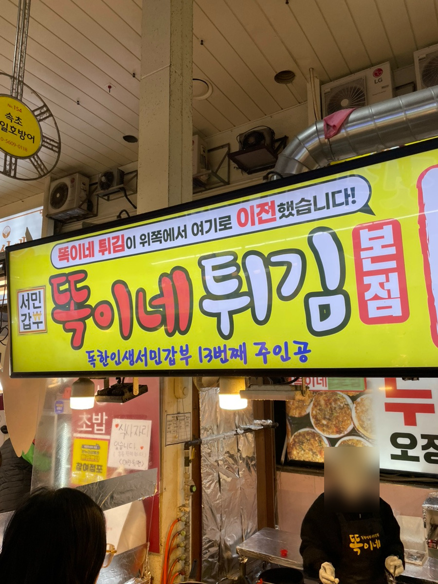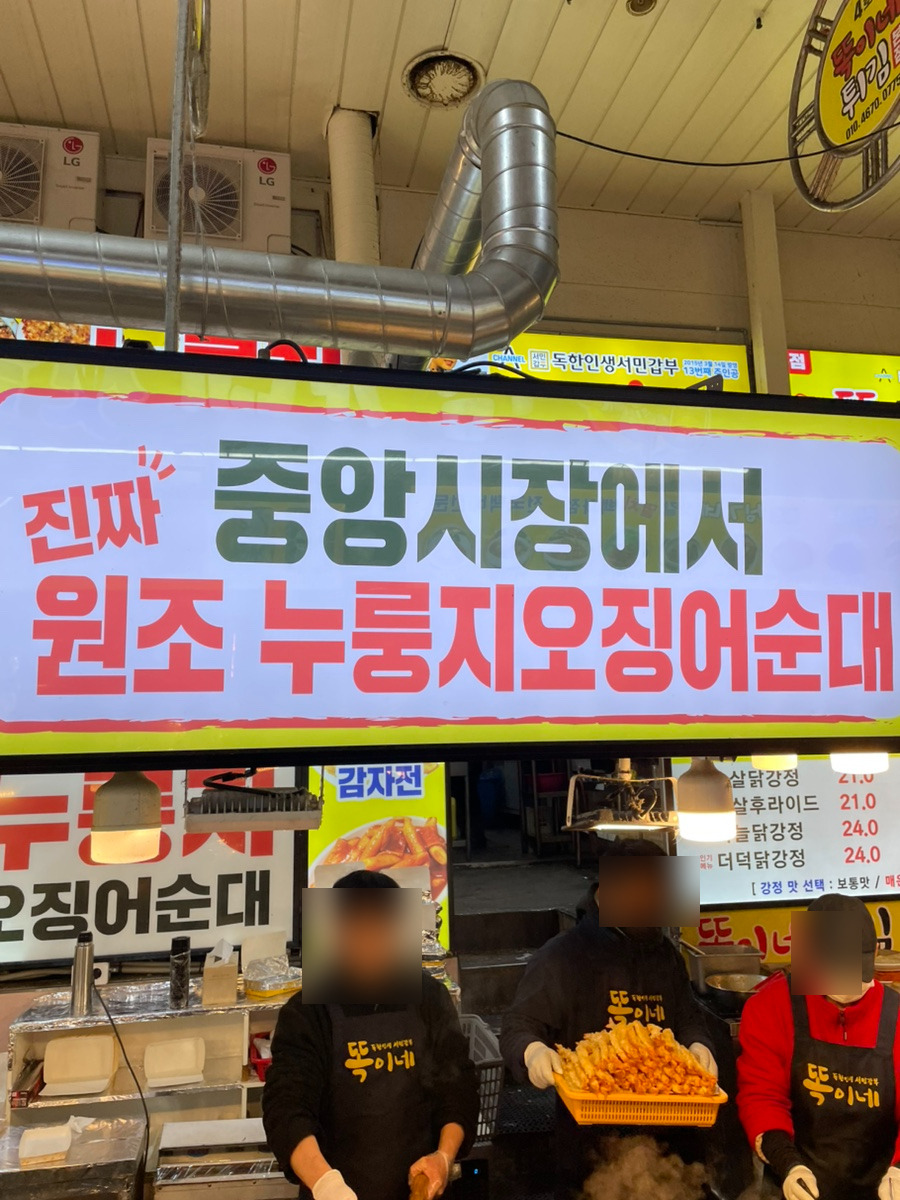 요즘은 누룽지오징어순대가 대세여서, 원조라고 하는 똑이네 튀김집으로 방문! 여기도 매장 내부까지 줄을 서야한다.