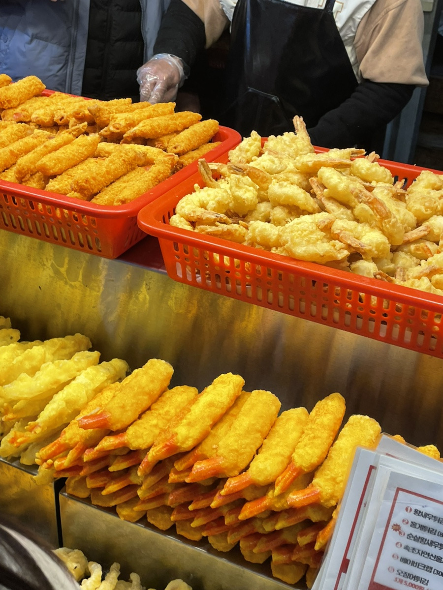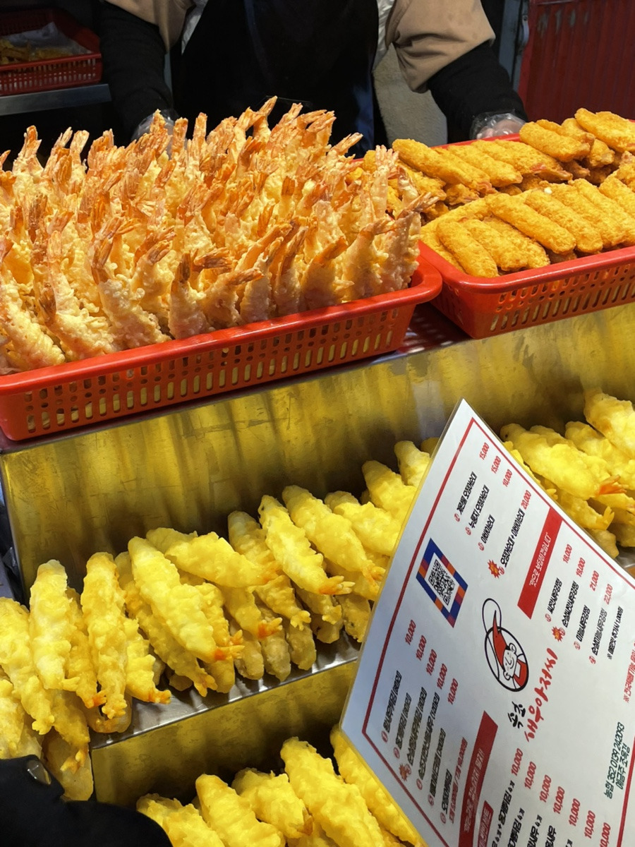 역시 물 맑고 해산물 많은 속초여서 그런지, 새우아저씨 매장의 새우튀김들이 몹시 아름답다.