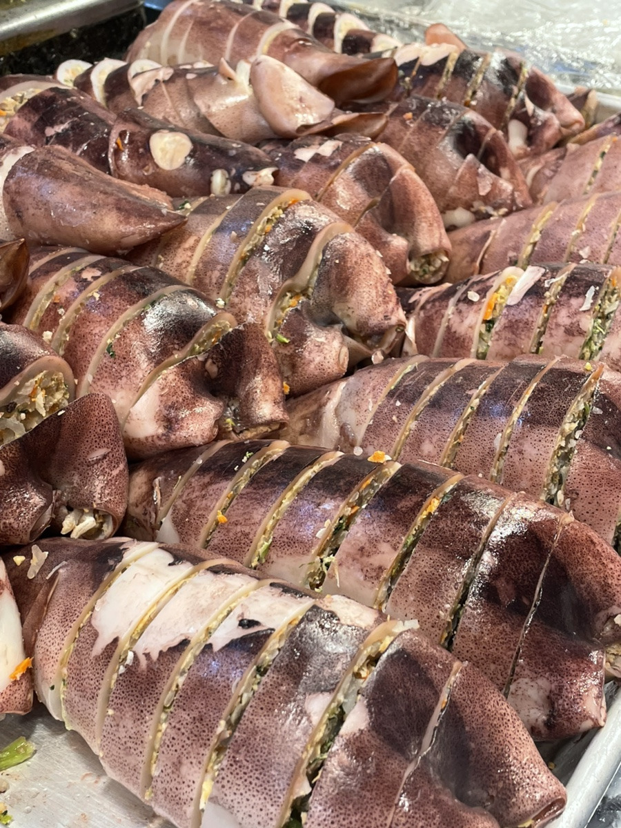 드디어 오랜 기다림 끝에 진열대 앞에서 만난, 속초에서 잡힌 부드러우면서도 통통한 오징어순대!