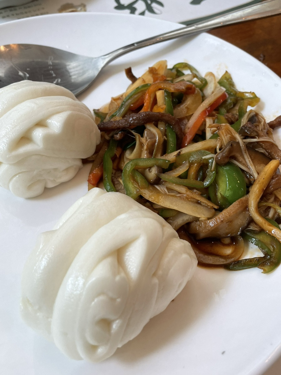 보들보들 동파육과 고추잡채 꽃빵이 함께 나왔다.