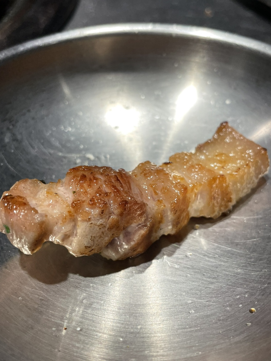 마지막 1인분은 구워지고 나면 꼬들꼬들함이 매력적인, 마치 참치 뱃살 부위 같은 모양의 윤기 좌르르 흐르는 항정살.
