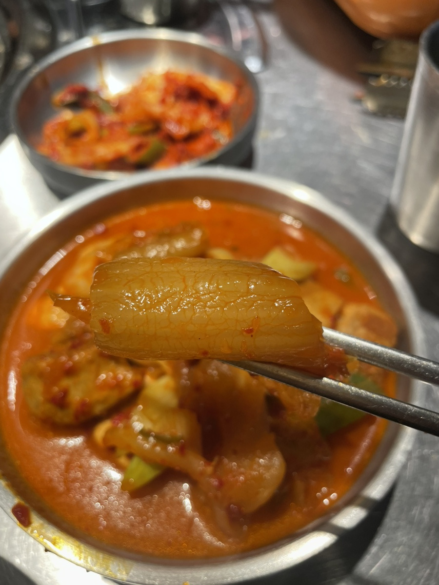 김치찌개는 고춧가루 특유의 떫은맛은 하나도 없는 부드러운 깊은 감칠맛에, 숙성통삼겹살이 그대로 들어가서 고기 잡내 없이 부드럽고 김치와 너무나 잘 어울린다.