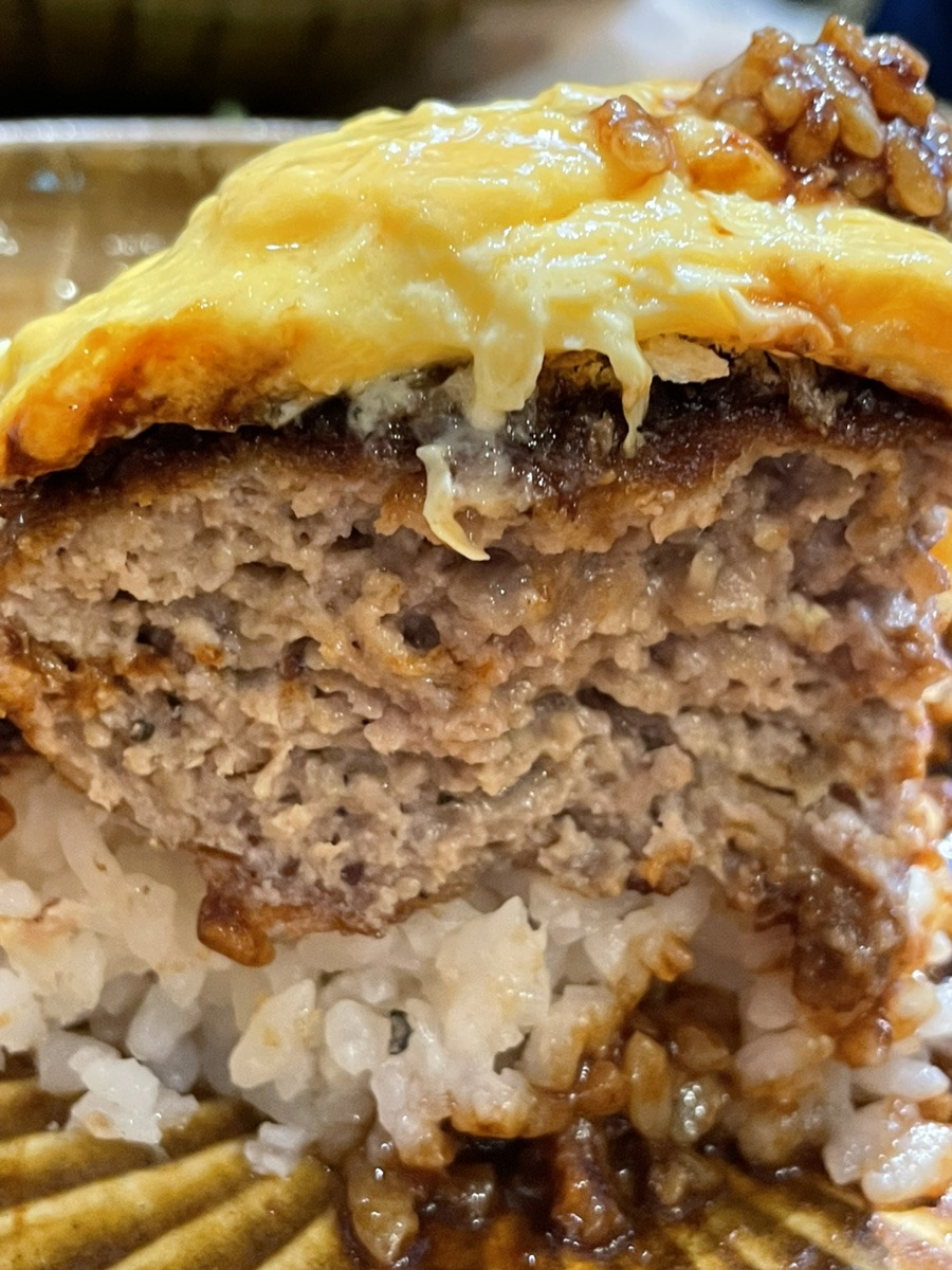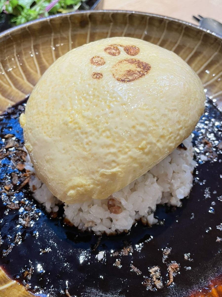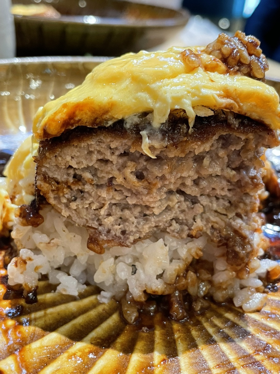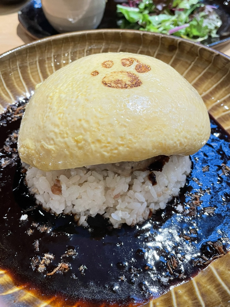 퍽퍽하지 않고 두툼한 함박스테이크가 보들보들한 오므라이스 이불을 덮고 입 안으로 들어온다.