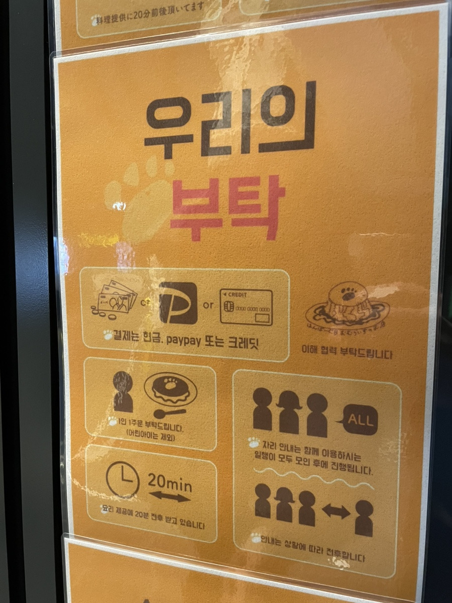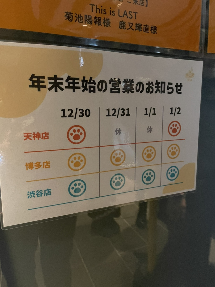 이쿠라 오므라이스 함박스테이크 매장은 세 곳이 있는 듯 하다. 연말 영업시간에 강아지 발자국 도장이 찍혀있다.