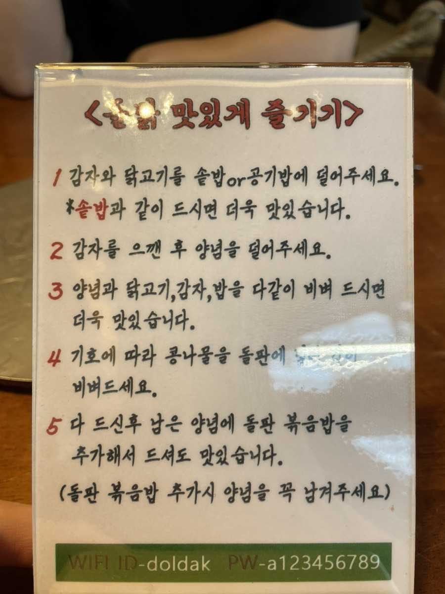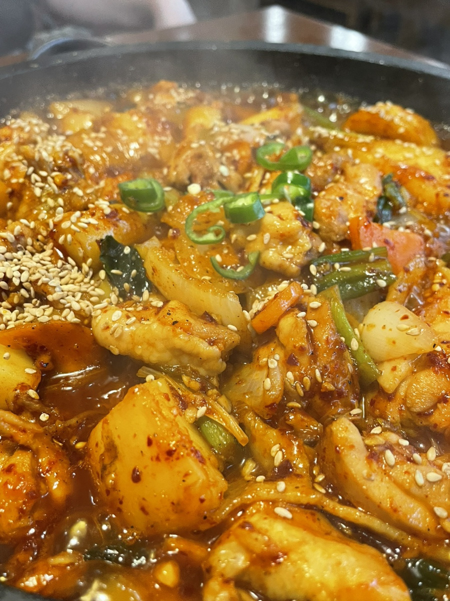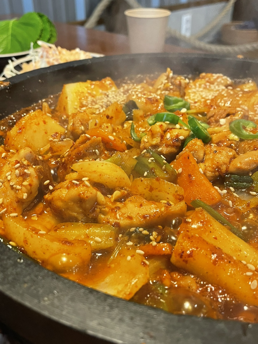 맵기도 조절 가능해서 매운 음식 잘 못 드시는 분들도 편하게 즐길 수 있지만, 매콤한 맛을 주문하고 쌈을 싸 먹는것을 추천한다. 같이 나온 기본 반찬들도 깔끔했고, 돌닭을 깻잎에 싸 먹으니 은은한 향까지 더해져 훨씬 맛있으니 꼭 추천.