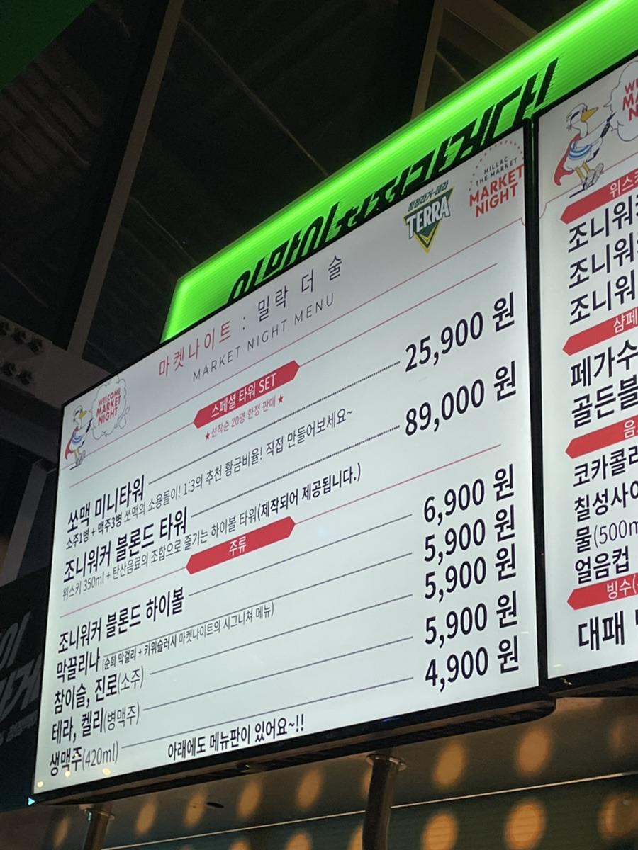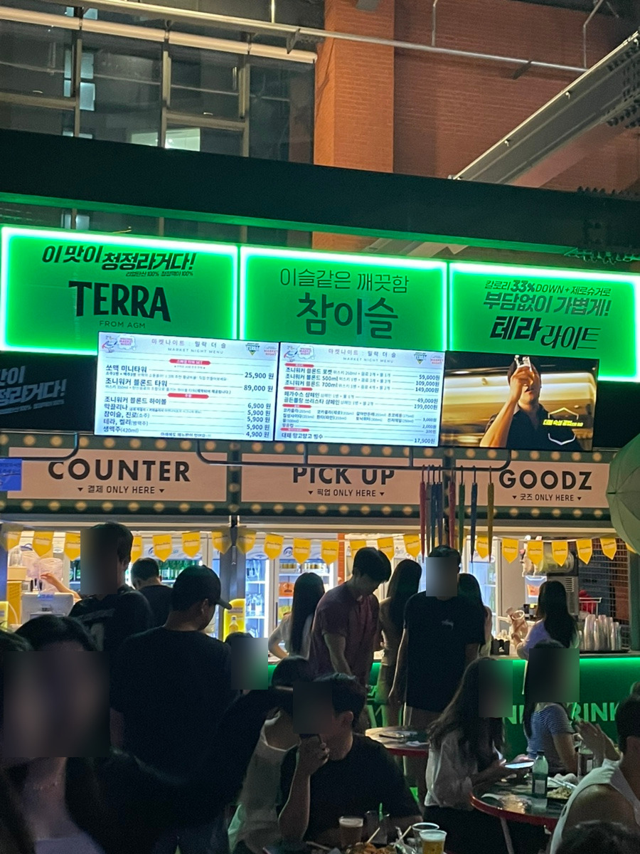 야시장에서는 주류와 돗자리도 구매할 수 있고, 계단이나 야외에서 돗자리를 깔고 디제잉 하는 신나는 음악과 함께 한잔 즐기는 분위기가 매력적이다. 입장료는 따로 없으나, 자리에 앉으면 주류나 안주 1종류 이상 필수 구매를 해야한다. 스마트오더 키오스크로 주문하면 되는데 주류를 구매할 땐 신분증 확인 후 팔에 도장을 받아야 하고, 도장이 없으면 주류나 안주 구매가 제한된다.