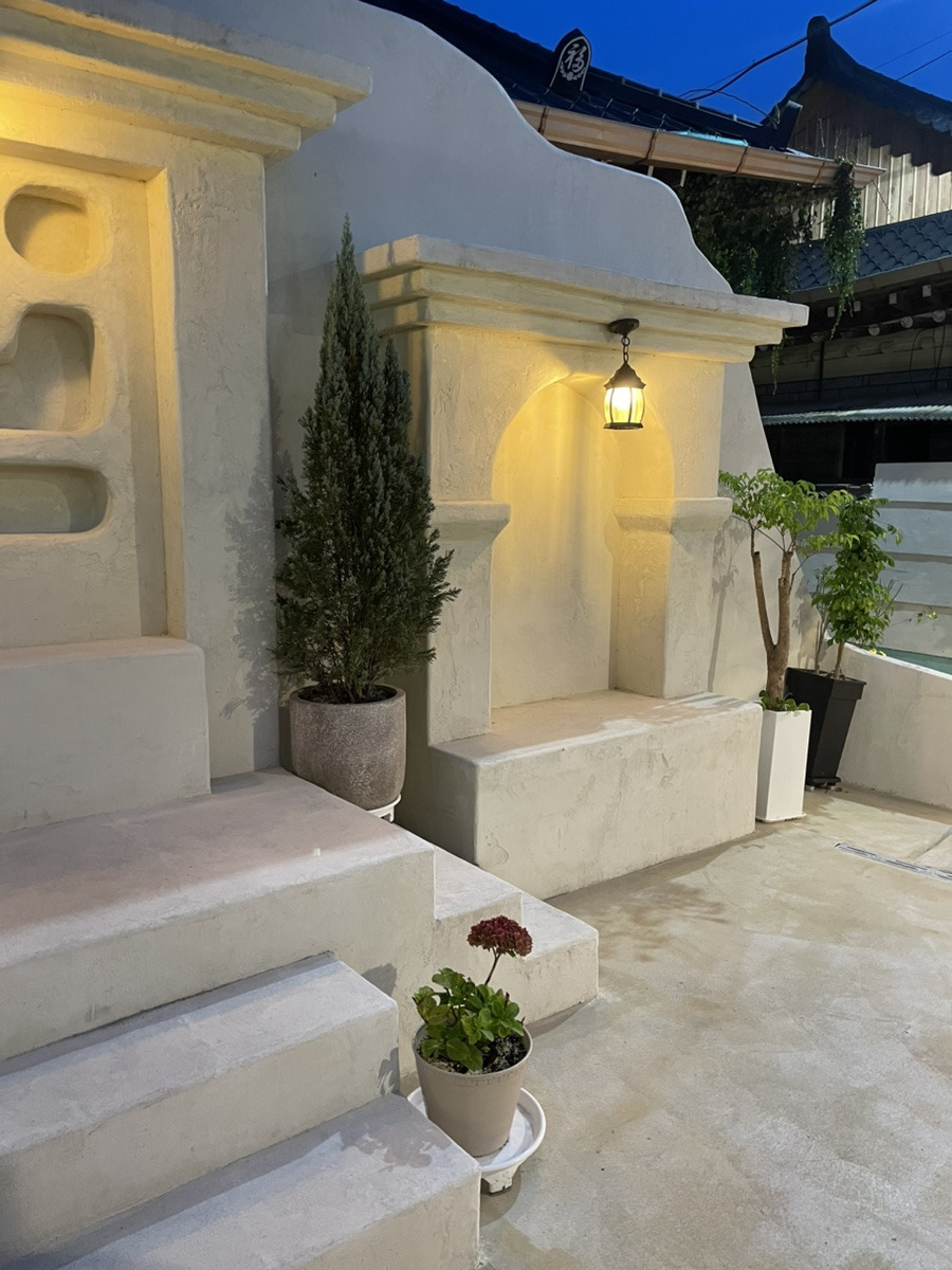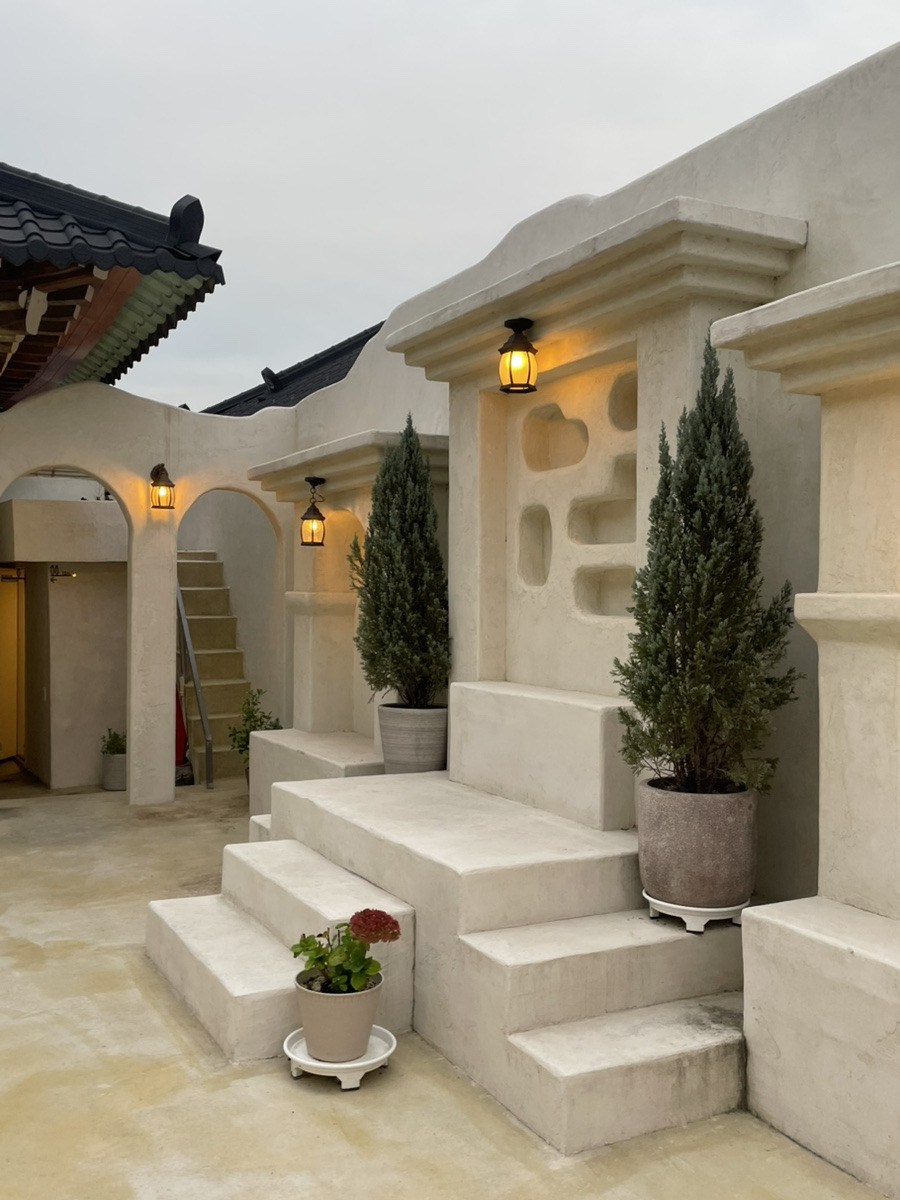 화이트 스톤의 느낌으로 그리스 혹은 이탈리아 남부 느낌이 팍팍 밀려오는 외관이 이색적으로 마음에 든다.
