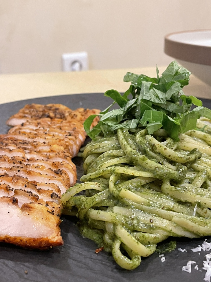 고소하고 풍미가 가득한 깻잎파스타! 그리고 겉바속촉 야들야들 항정살과 수제토마토가 구워져 올라와 있고 쌈장이 리얼 킥 이었다.