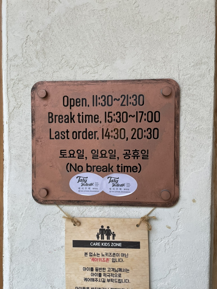 영업시간 : 매일 11:30-21:30 (브레이크타임 15:30-17:00, 주말 브레이크타임 없음)