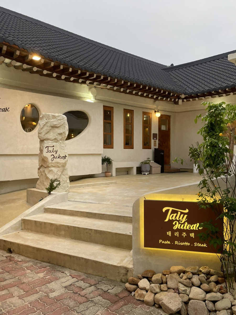 이름으로 유추해 보아 이태리 + 한옥주택 의 조합이 아닐까 싶었는데, 매장 외관을 보고 바로 이해되었다. 주말이나 다른 시간대에는 대기자도 많은지 대기좌석 및 대기예약기계도 있었다.